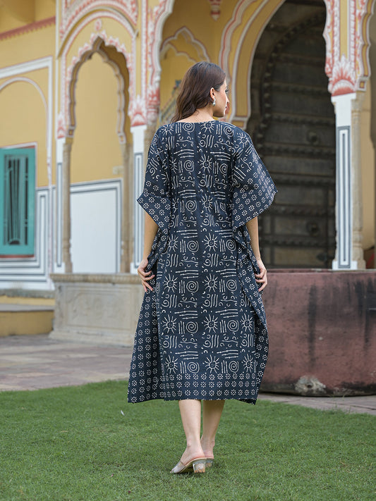 Blue Printed Cotton Fabric Fit & Flare Dress