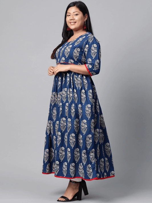 Plus Size Royal Blue Printed Floor Length Anarkali