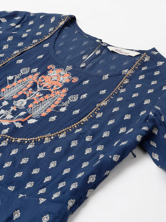 Indigo Ethnic Motif Rayon Anarkali Kurta