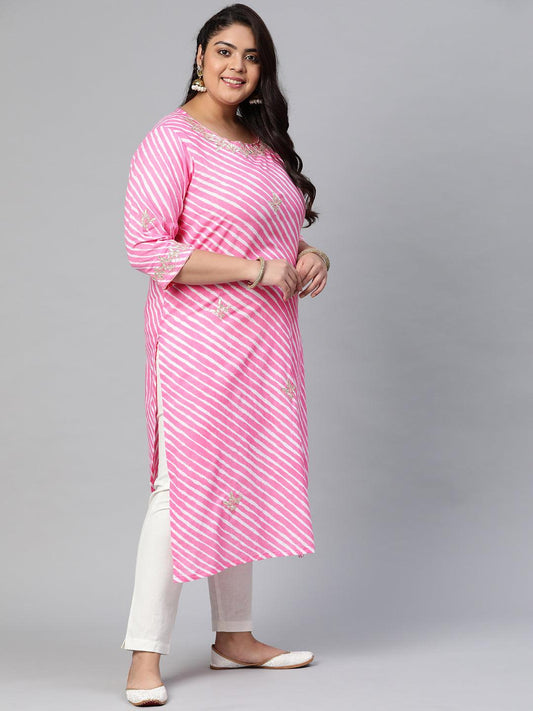 Plus Size Pink Lahariya Cotton Gota patti Straight Kurta