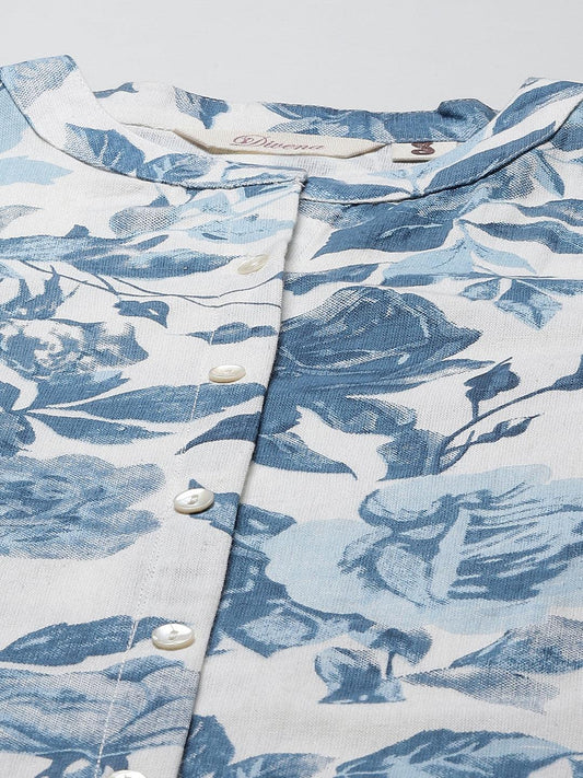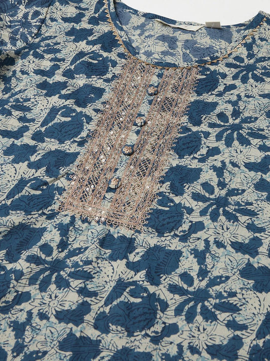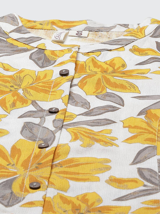 White Floral Print Cotton A-Line Plus Size Kurta for Women
