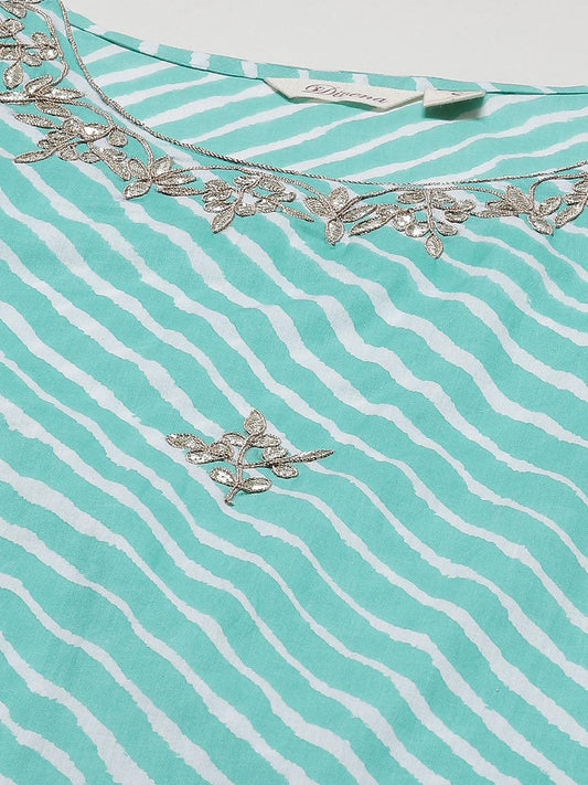 Green Leheriya Cotton Gota Patti Straight Kurta