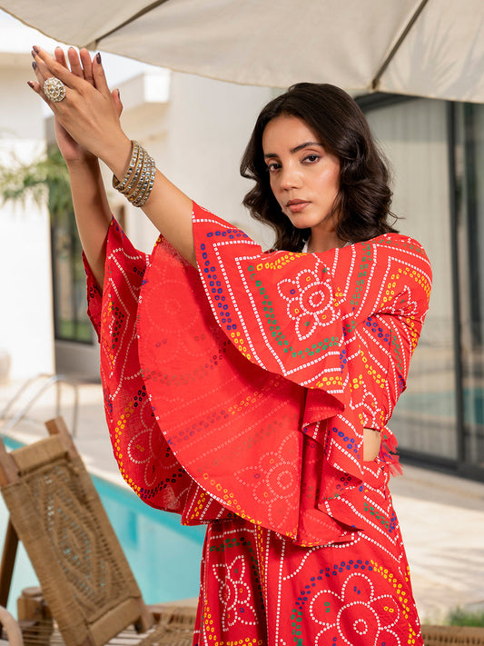 Bandhani Printed Cotton Lehenga & Blouse With Dupatta