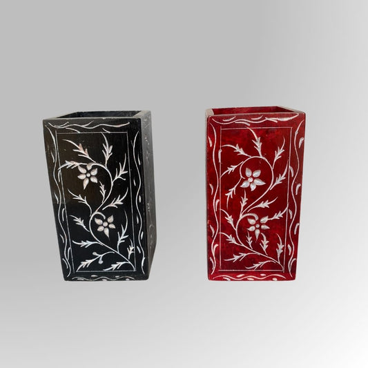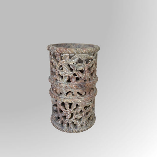 Handcrafted Pareva Stone Pen Holder - Naturalistic Carved Design