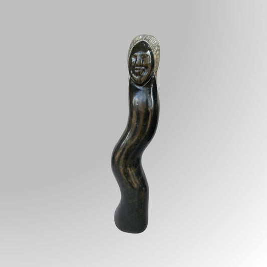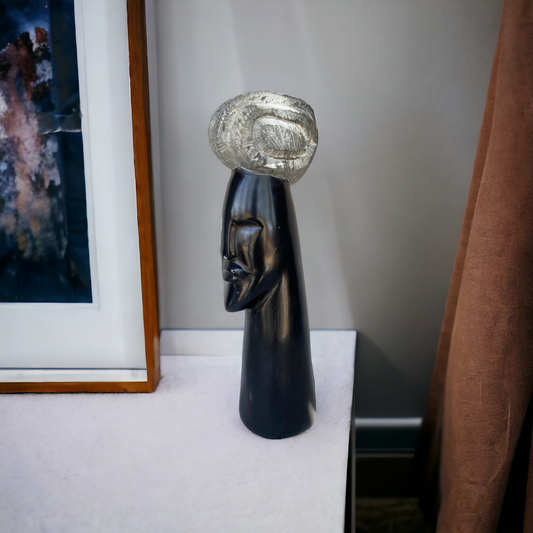 Handmade Black Tall Pareva Stone Idol - Unique Home Decor Statue