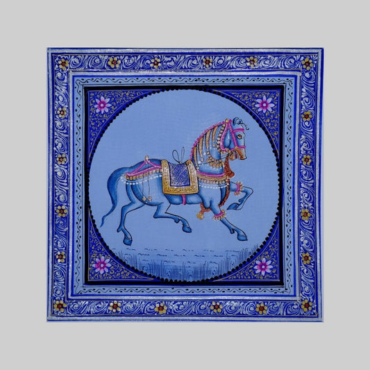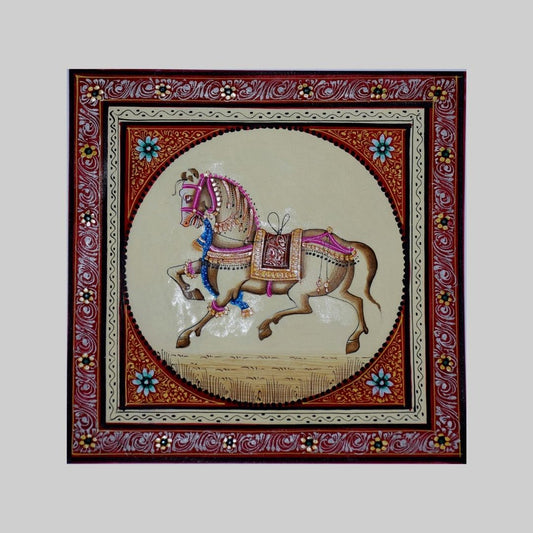 Gracious strokes artfully done with a single haired brush, marks the detailing in the renowned Miniature paintings.