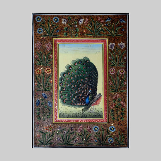 The genesis of the Mughal miniature painting is said to be one of the pivotal points of visual history of India. An extravagant and striking fusion of the Indian style, whose roots that go back to the 6th and 7th Centuries BCE, and the Safavid style of the Persian school gave birth to the Mughal School of miniature painting. Under the patronage of Mughal emperors like Akbar and Jahangir, miniature art became the primary mode of historical archiving. The visual splendour of courtly scenes, historic wars, secret trysts of lovers, tales from mythology, and much more were captured in detail by the many schools of miniature painting throughout India.