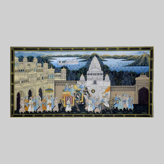 Rajput Maharaja Procession in Rajasthani Miniature Painting 5