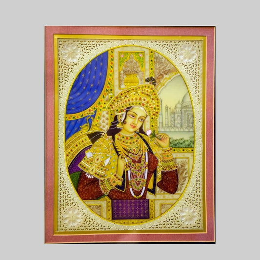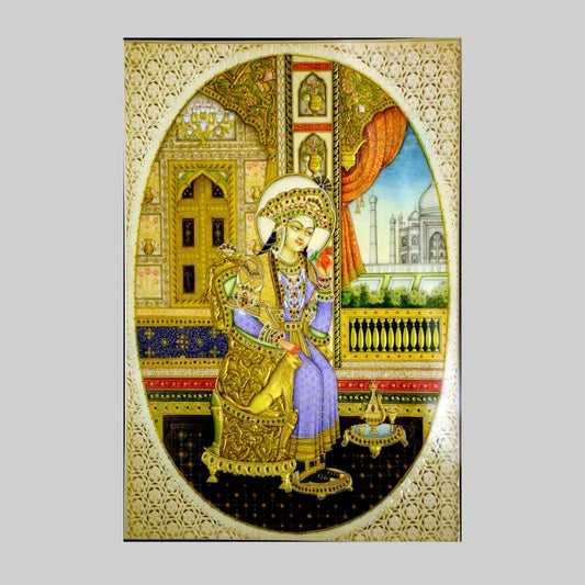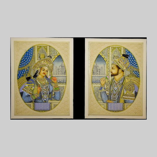 Shah Jahan and Mumtaz Handmade Miniature Painting in Water Color Resin Tile 75