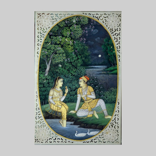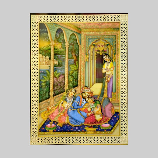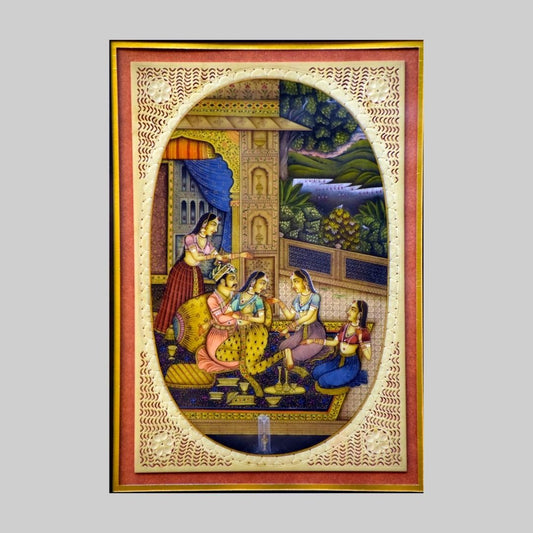 Gracious strokes artfully done with a single haired brush, marks the detailing in the renowned Miniature paintings.