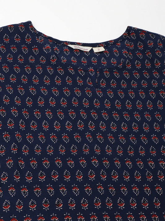 Blue Multi Floral Print Cotton Regular Fit Night Suit