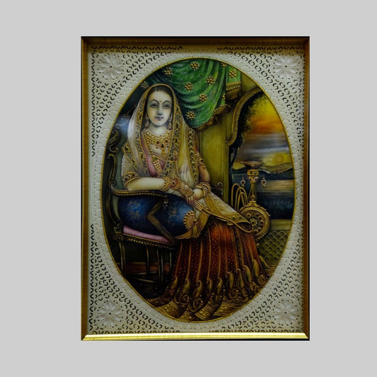 Indian Miniature Rajasthani Princess Painting on a Resin Tile 103