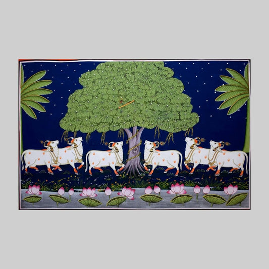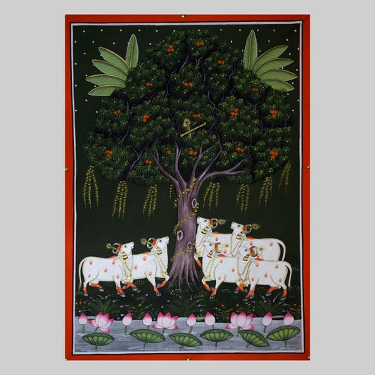 Ashwatha (Peepal) Tree with Cows Pichwai Art Painting