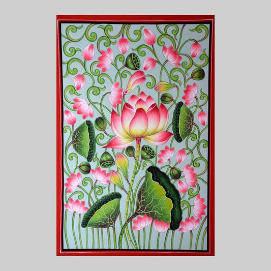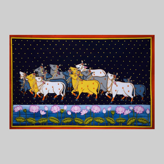 Blossom Tale: Kamal Talai and Cow, Pichwai Painting- Set of Two