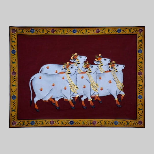 Kamdhenu The Sacred Cows Pichwai Art Painting