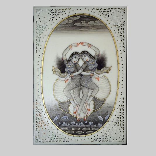 Handmade Rajasthani Miniature Painting of dancing girls on Resin Tile 73