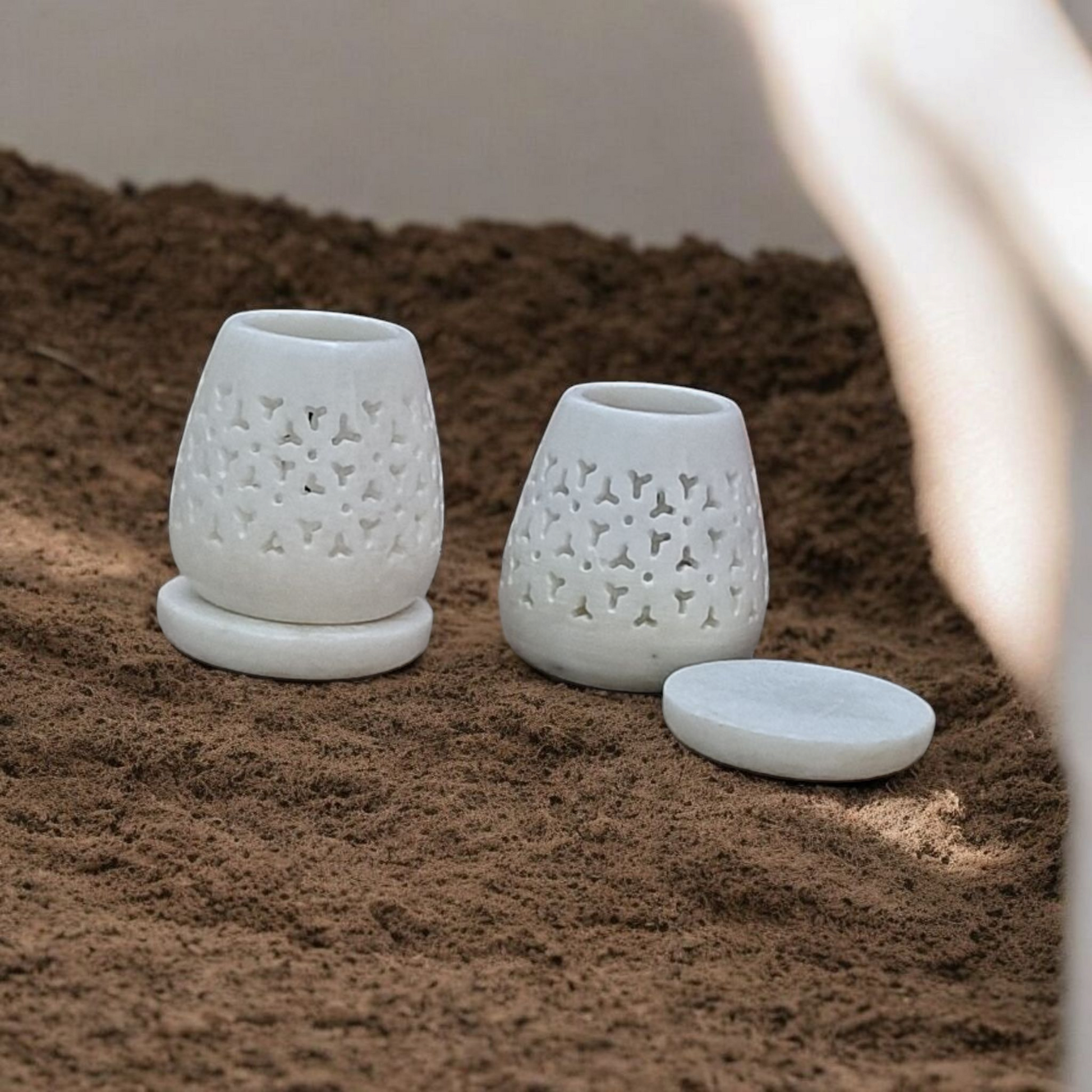 Soft Glow White Marble Stone Candle Holders With Base