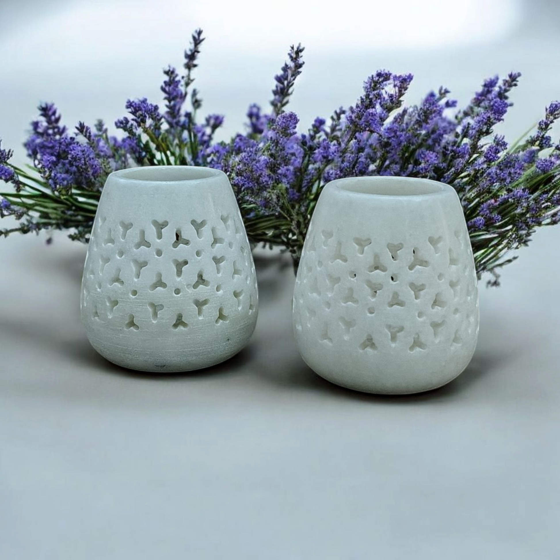 Ivory Glow Carved Marble Stone Tea Light Holders