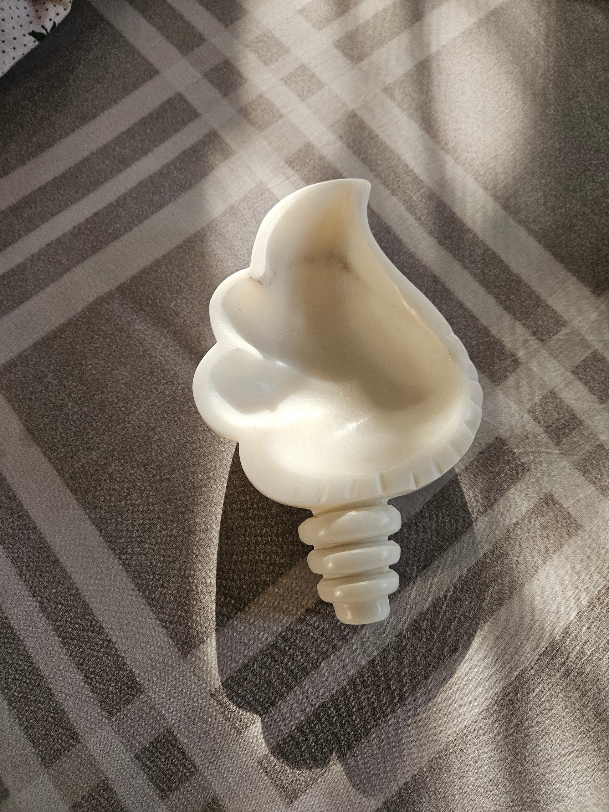 Shell Design: Hand-carved conch shell shape with natural curves