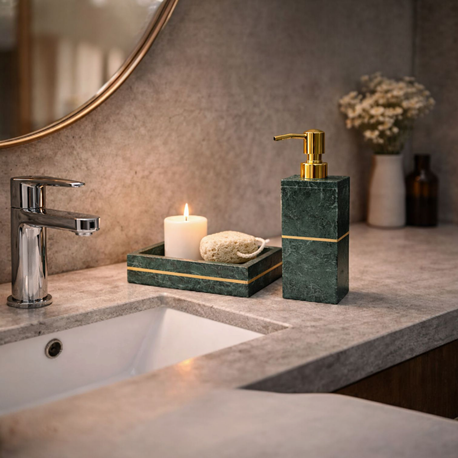Luxury Green Marble Soap Dispenser with Soap Tray
