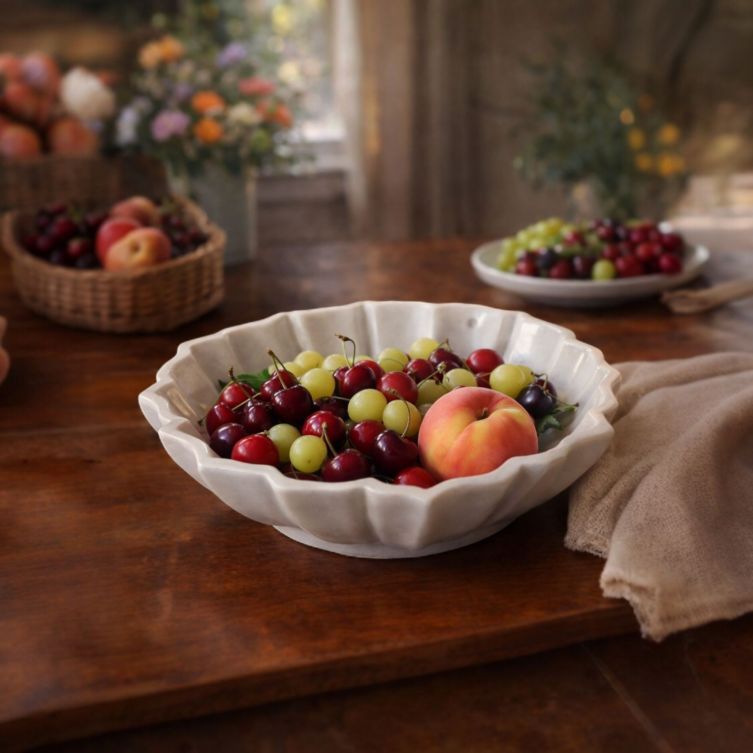 Hand-carved leaf bowl in premium natural marble. Elegant organic design perfect for serving, display, or as a statement centerpiece.